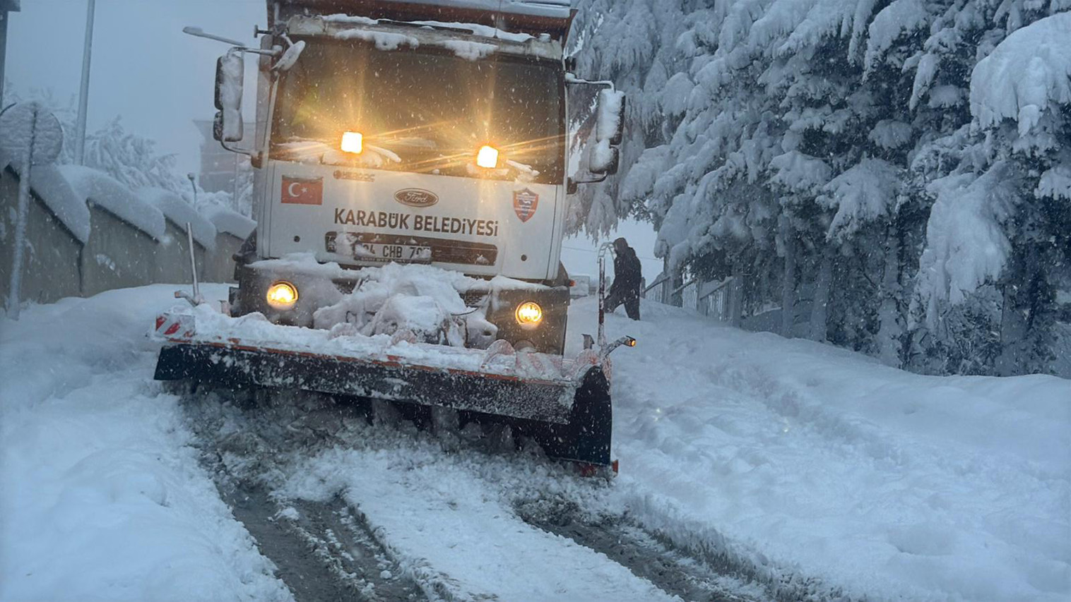 Karabük Belediyesi’ne bağlı ekipler; kar küreme, tuzlama ve yol açma çalışmalarını yoğun bir tempoyla sürdürüyor. 200 personel 45 araç, zorlu hava şartlarına rağmen 7/24 çalışarak şehir genelinde ulaşımın aksamaması için büyük bir mücadele veriyor.