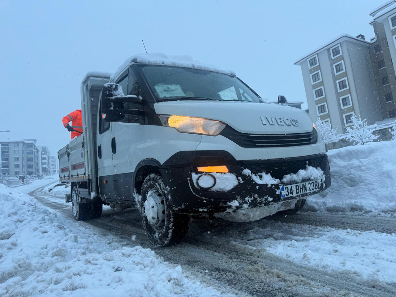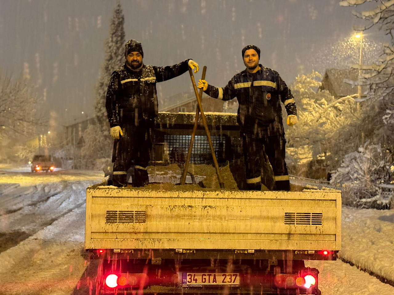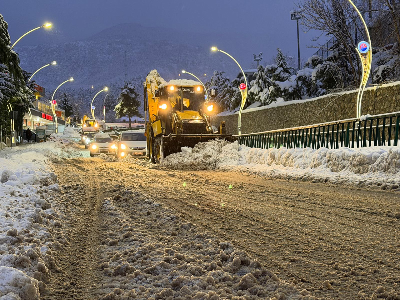 Karabük’te son yılların en yoğun kar yağışının etkili olduğu günlerde Karabük Belediyesi, karın ilk yağdığı andan itibaren sahada yürüttüğü çalışmalarla şehir genelinde ulaşımın ve günlük yaşamın aksamaması için yoğun bir mücadele sergiledi. Belediye ekiplerimiz, zorlu hava koşullarına rağmen ana arterlerden mahalle yollarına kadar kent genelinde kar küreme ve tuzlama çalışmalarını aralıksız sürdürdü.