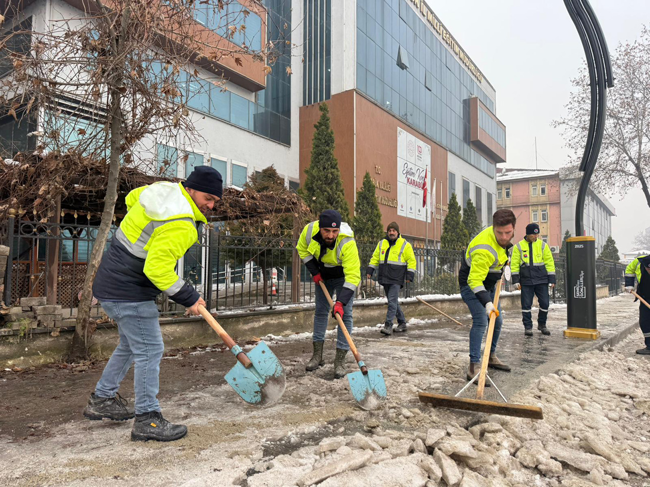 Belediye ekiplerimiz tarafından cadde, sokak ve yaya alanlarında biriken karlar temizlenirken, şehir genelinde düzenin sağlanmasına yönelik çalışmalar planlı şekilde yürütülüyor.