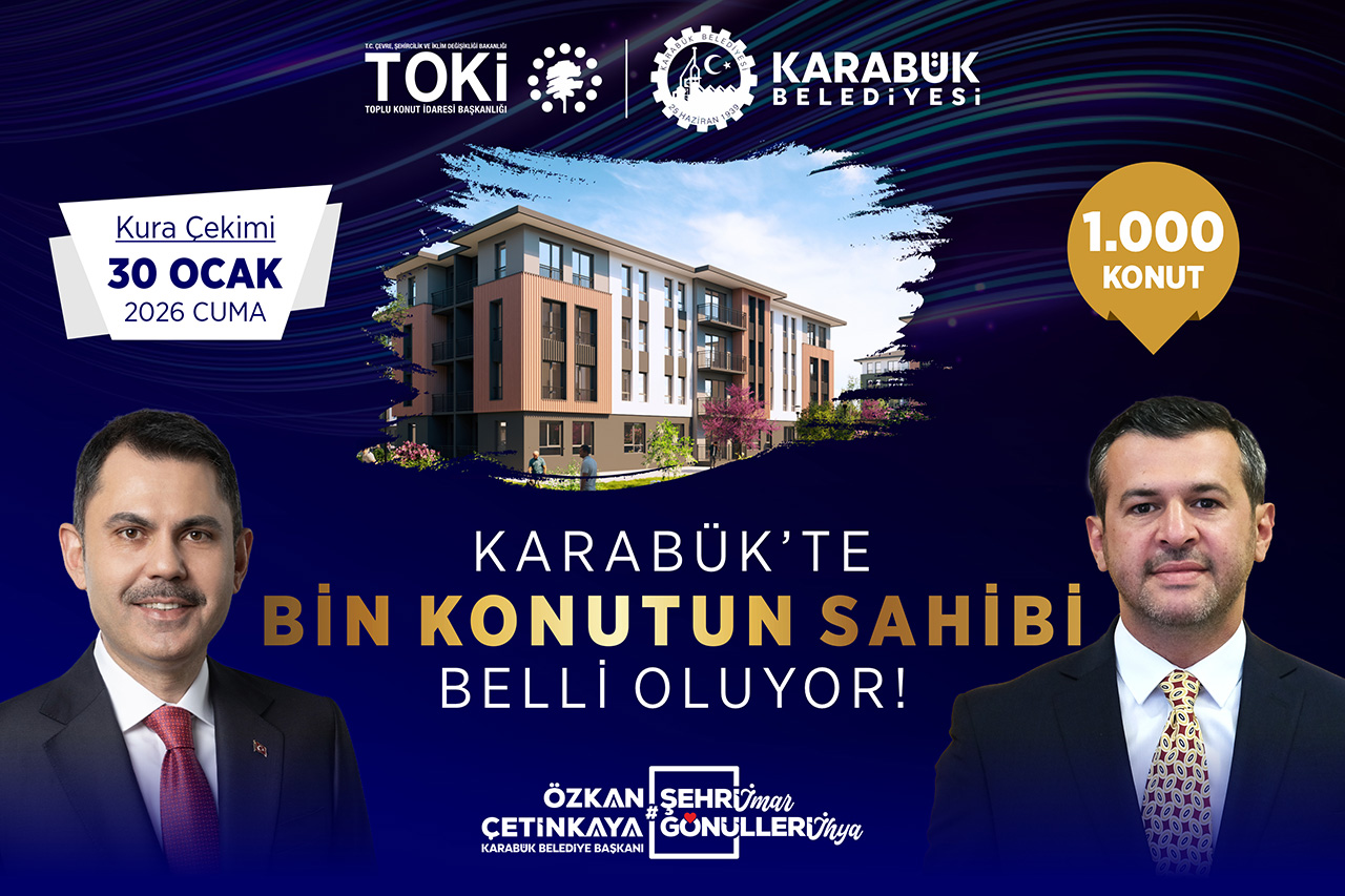 Çevre, Şehircilik ve İklim Değişikliği Bakanlığı ile Toplu Konut İdaresi Başkanlığı (TOKİ) tarafından yürütülen “Ev Sahibi Türkiye – Yüzyılın Konut Projesi” kapsamında Karabük’te inşa edilecek 1.600 sosyal konutun hak sahipleri, 30 Ocak 2026 Cuma günü yapılacak kura çekimiyle belirlenecek.