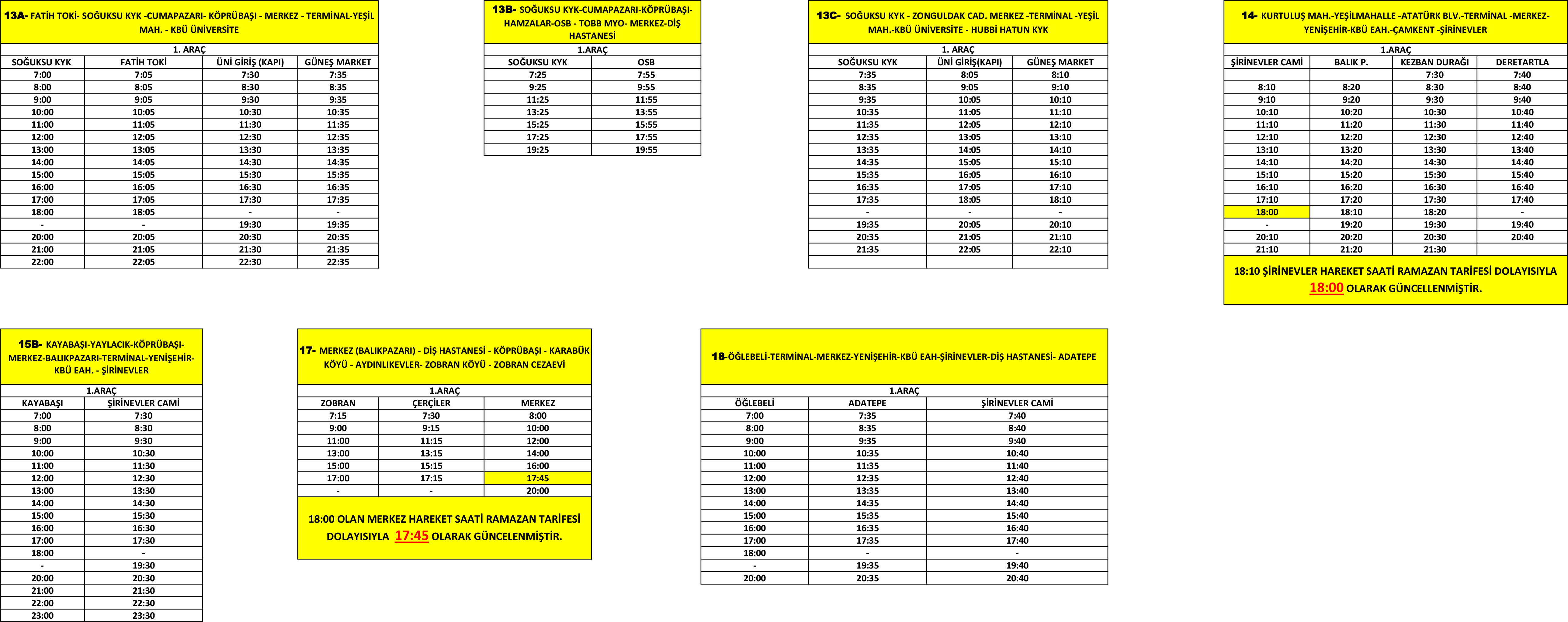 Ramazan Ayı Cumartesi Günü Ulaşım A.Ş. Otobüs / Minibüs Saatleri ve Hatlar Ramazan Ayı Cumartesi Günü Toplu Taşıma Araçlarımızın Çalışma Saatleri İçin Tıklayınız (.pdf)