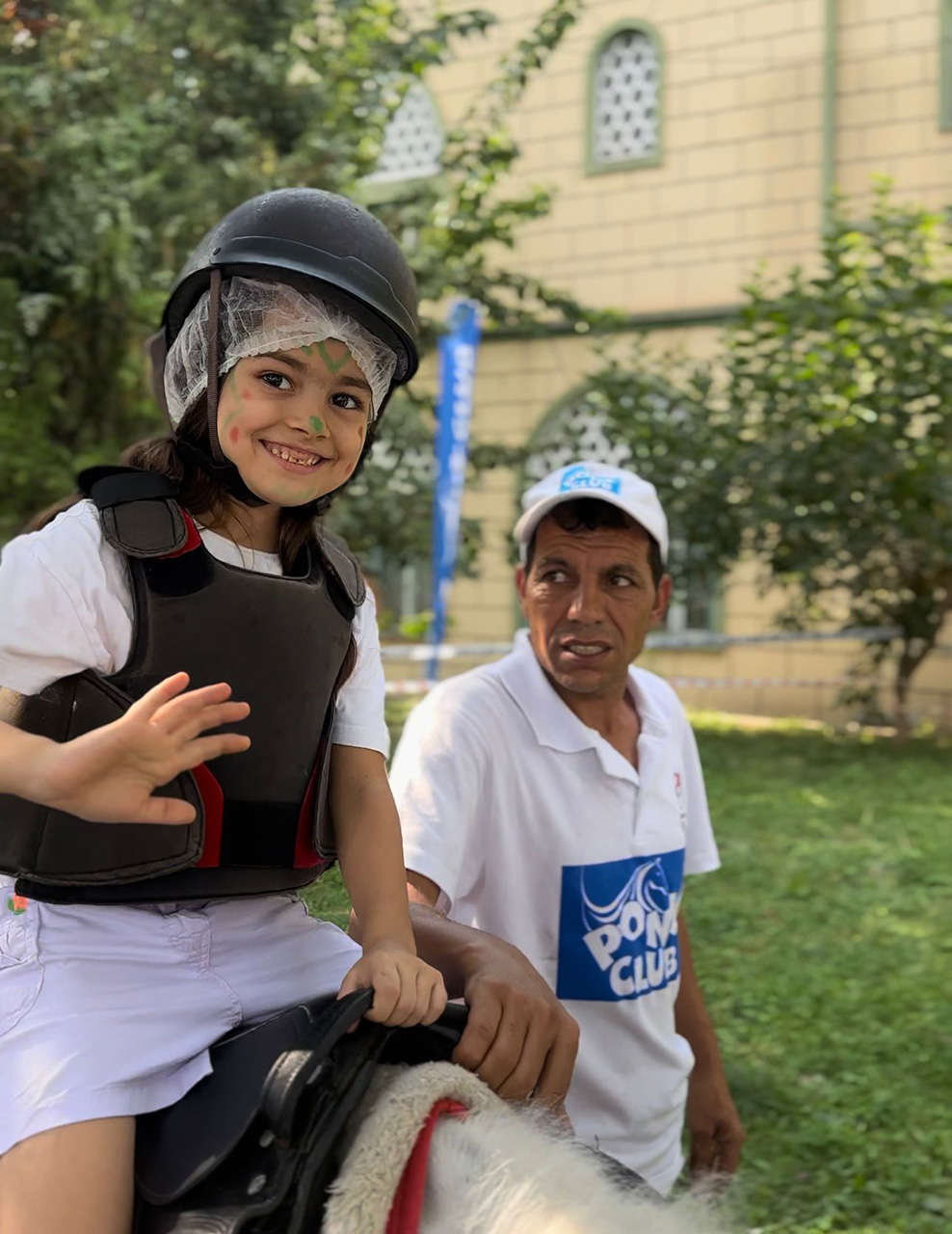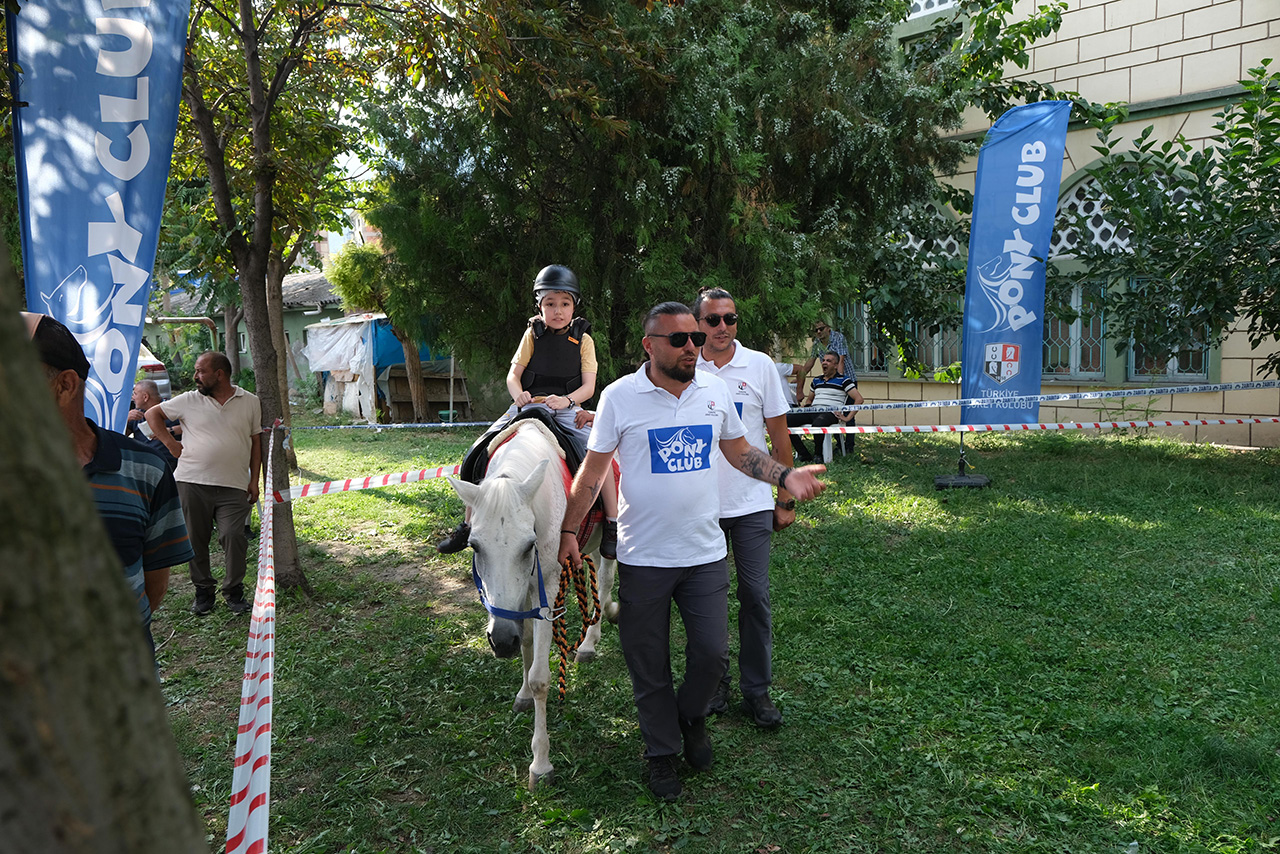 Etkinlik, güvenlik önlemleri alınarak gerçekleştirildi. Kask ve yelek giydirilen çocuklar, uzman eğitmenler eşliğinde sevimli midilli atlarına binerek doyasıya eğlendiler.