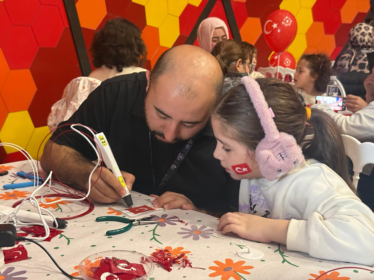 4-10 yaş grubundaki çocuklara yönelik hazırlanan atölyede, 3D kalemle bayrak tasarımı, Türk bayrağı yapımı, "Cumhuriyet Emin Ellerde" hatıra panosu ve yüz boyama gibi etkinlikler yer aldı. Renkli görüntülere sahne olan programda çocuklar hem eğlendi hem de Cumhuriyet bilincini pekiştiren etkinliklerle unutulmaz bir gün yaşadı.