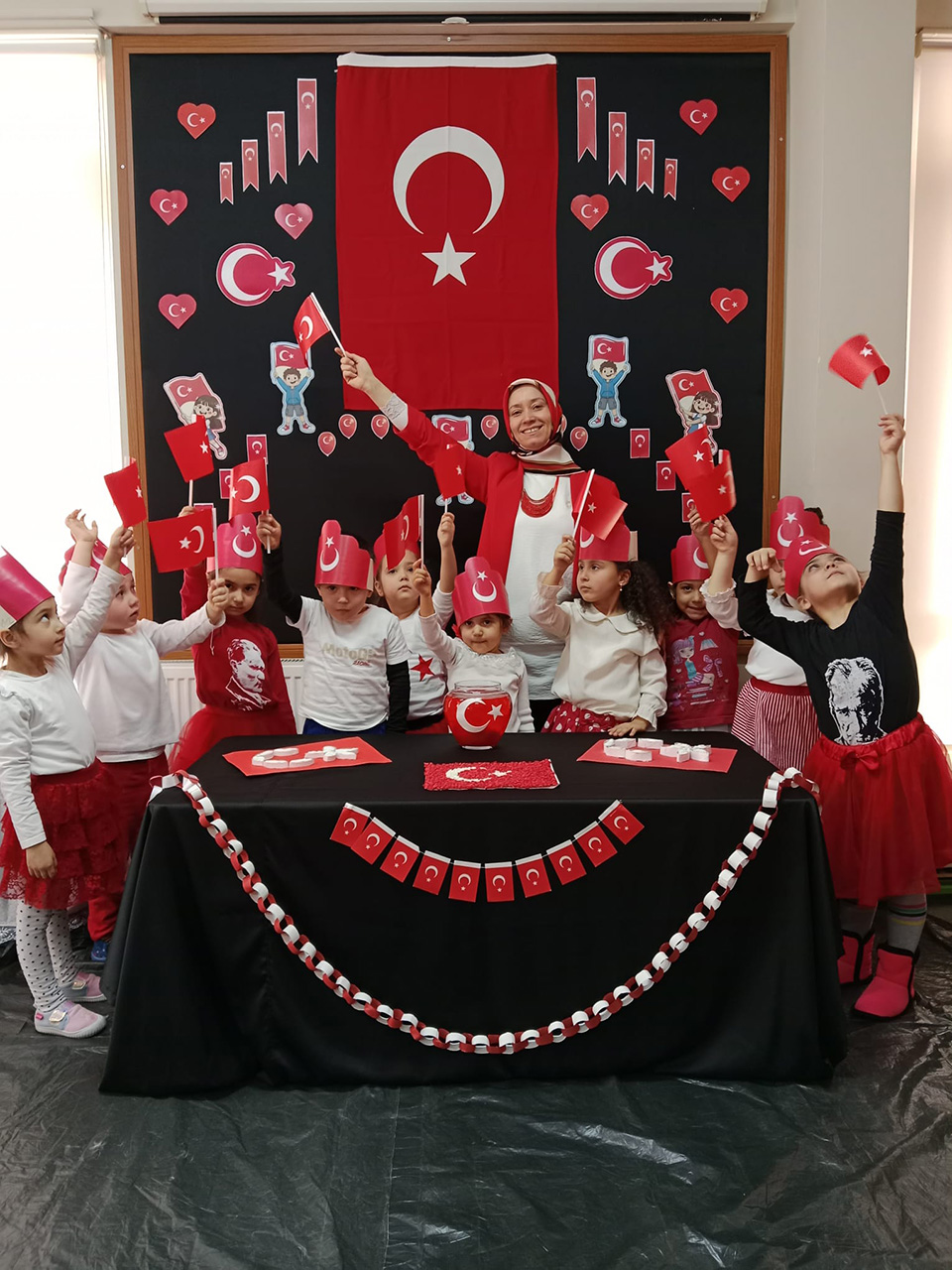 Öğretmen Perihan Özbek rehberliğinde gerçekleştirilen etkinliklerde; bayrağımızın rengi, üzerindeki ay ve yıldızın anlamı, oluşumu ve bağımsızlığımızın simgesi oluşu çocukların yaş grubuna uygun şekilde ele alındı. Etkinlikler kapsamında deneyler, oyunlar, şarkılar ve eğitici çalışmalarla çocukların konuya aktif katılımı sağlandı.