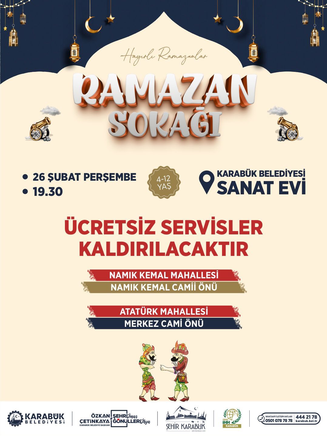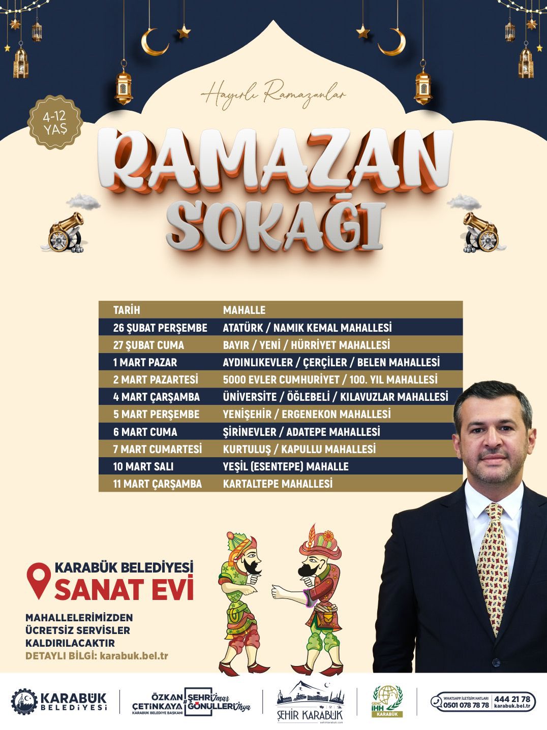 Karabük Belediyesi Sanat Evi’nde kurulan Ramazan Sokağı, çocuklara özel etkinlikleriyle Ramazan akşamlarını renklendiriyor. Ailelerinizle birlikte bu güzel atmosferde buluşarak kültürümüzün değerlerini hep birlikte yaşayalım.