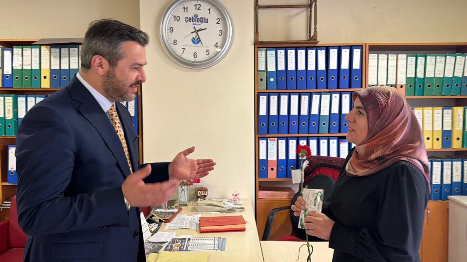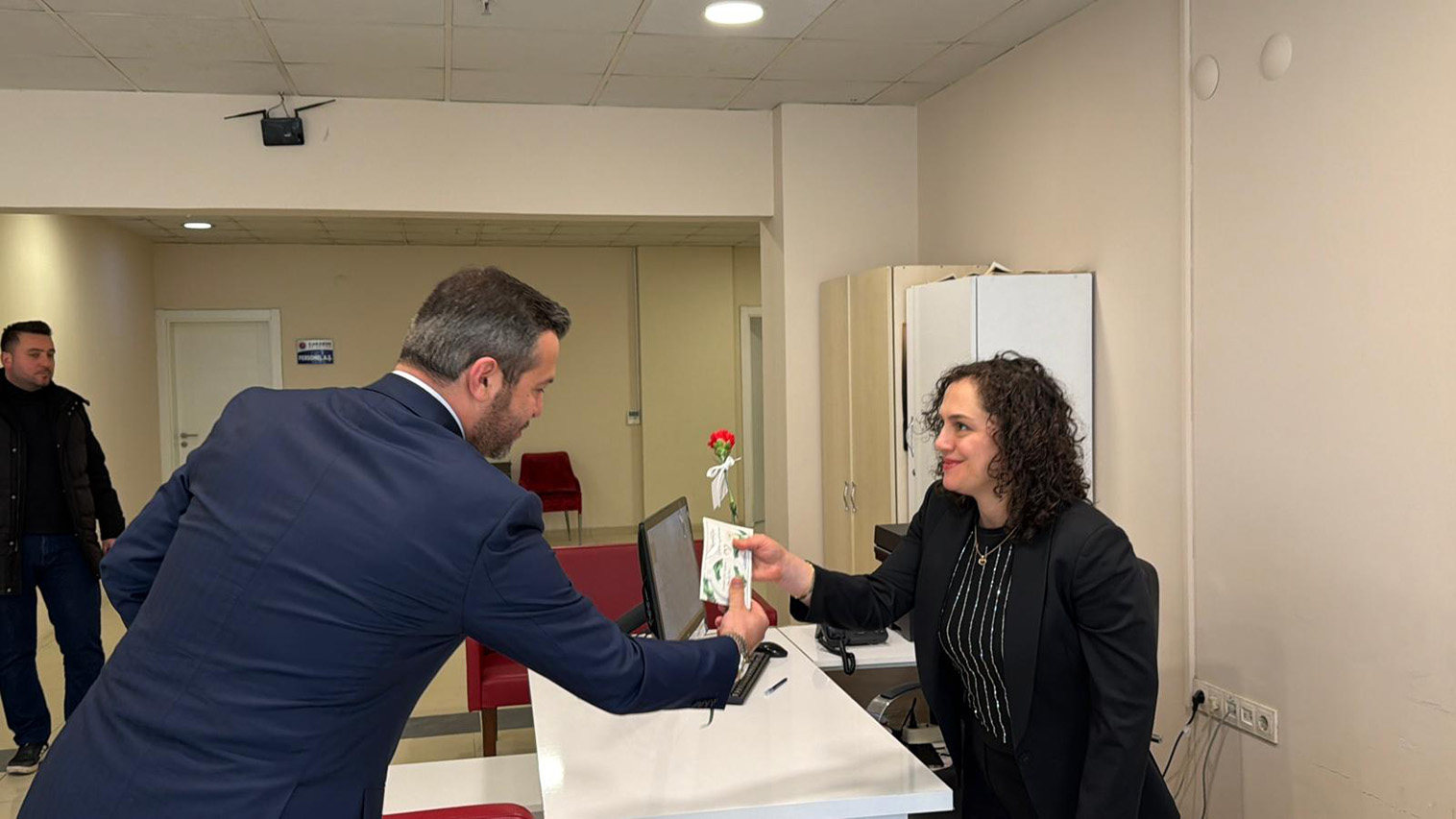 Belediye Başkanımız Özkan Çetinkaya, 8 Mart Dünya Kadınlar Günü dolayısıyla Karabük Belediyesi’nde görev yapan kadın çalışanlara çiçek ve çeşitli hediyeler takdim etti. Belediye birimlerimizde görev yapan kadın personelin gününü kutlayan Başkan Çetinkaya, kadın emeğinin Karabük’e sunulan hizmetlerde önemli bir yer tuttuğunu ifade etti.