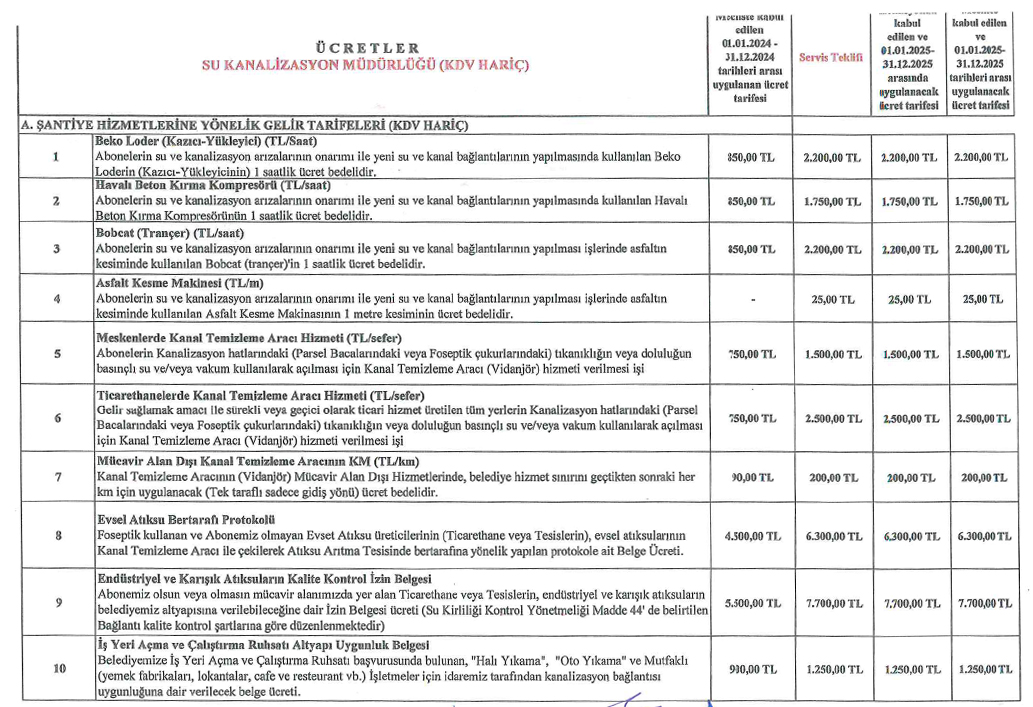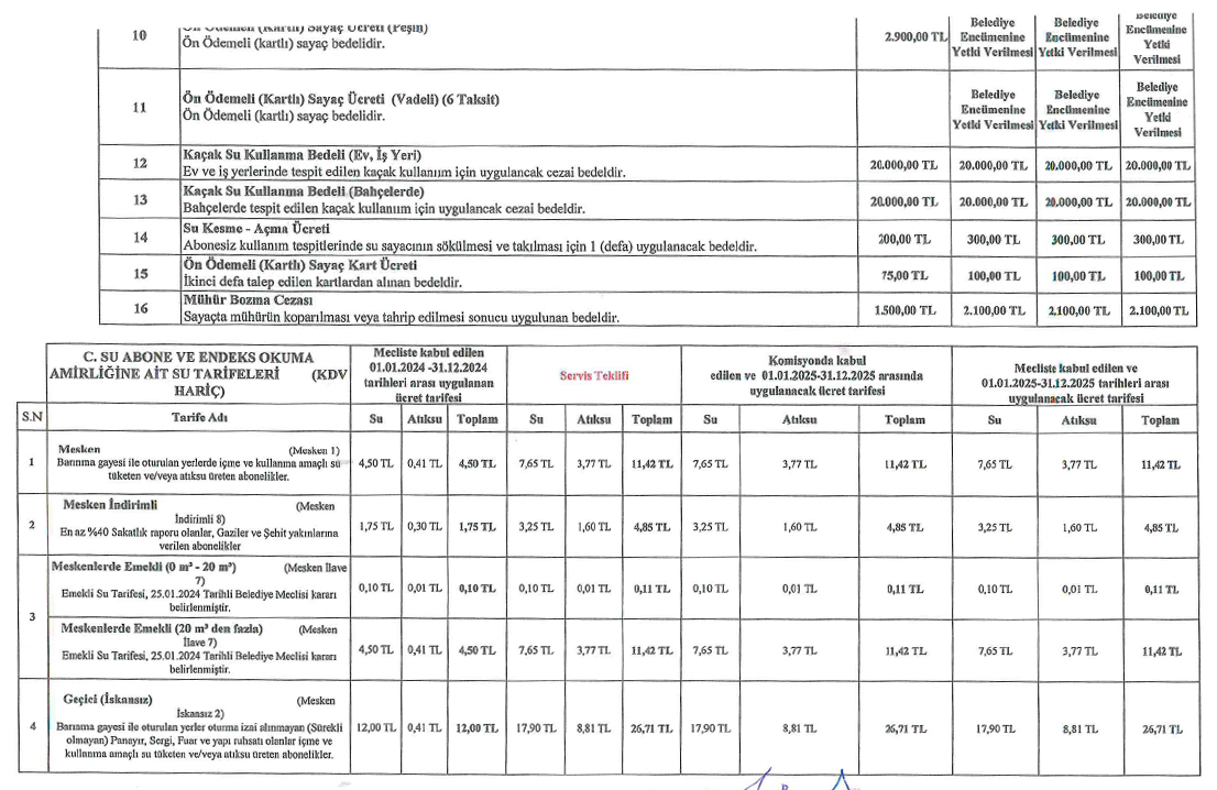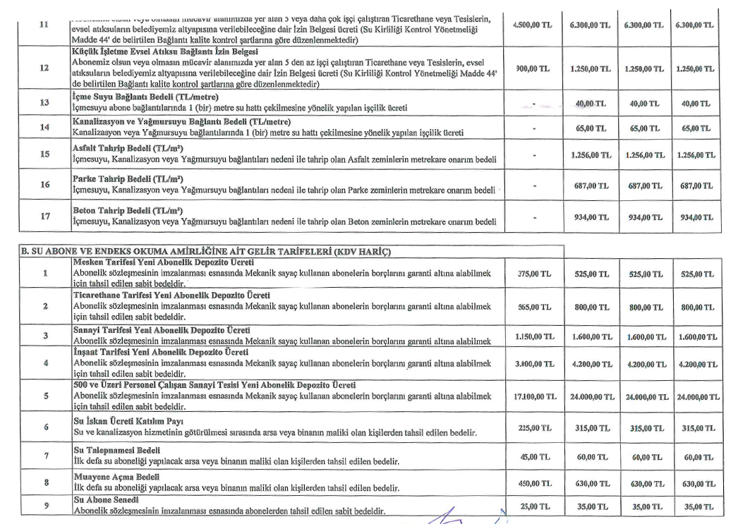 Kademeli Su Ücretlendirilmesi, Kaçak Su Kullanımı, Mühür Bozma ve Su Kesme - Açma Ücretleri